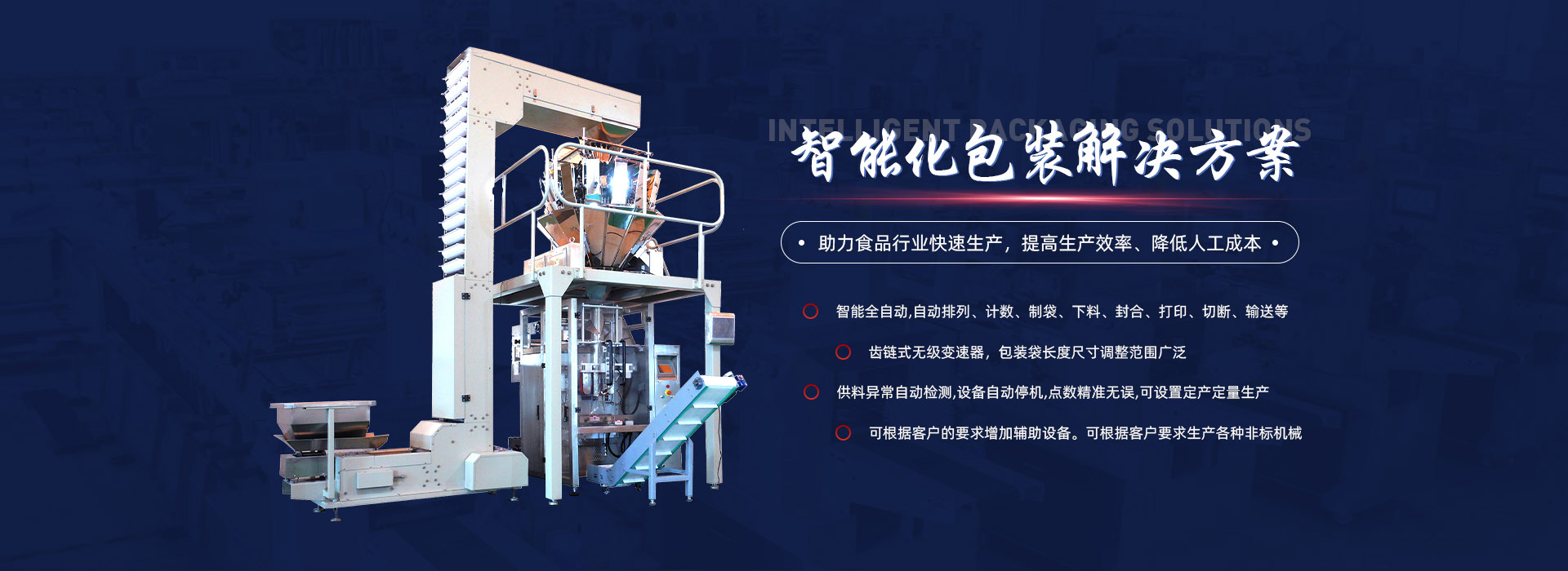 我公司一直致力于包裝機械的研發與創新,自行設計的藥用輸液瓶、軟袋自動包裝機、旁推鏈全自動枕式包裝機、紙巾包裝機、濕巾包裝機與吸管全自動包裝生產線、異形穿孔自動包裝機、GZB型系列高速枕式自動包裝機、食品包裝機等產品,以可靠的質量和良好的企業誠信贏得了國內外用戶的信賴。